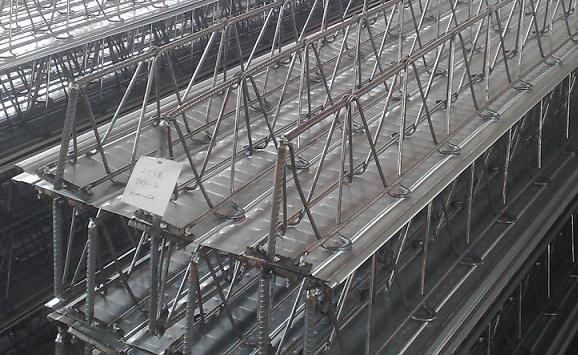 鋼筋桁架樓承板是屬于無支撐壓型組合樓承板的一種;鋼筋桁架是在后臺加工場定型加工,現場施工需要先將壓型板使用栓釘固定在鋼梁上,再放置鋼筋桁架進行綁扎,驗收后澆筑混凝土。實現了機械化生產,有利于鋼筋排列間...